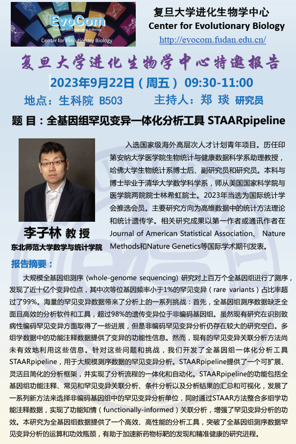 进化生物学中心特邀报告,2023-09-22(周五)09:30,李子林 教 授(东北师范大学数学与统计贝博 )