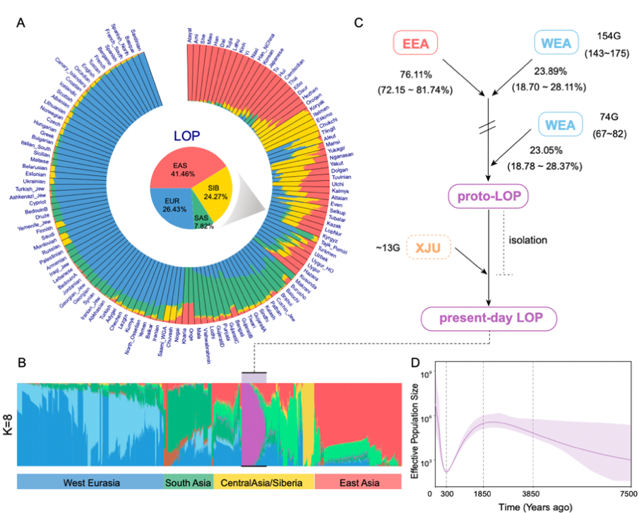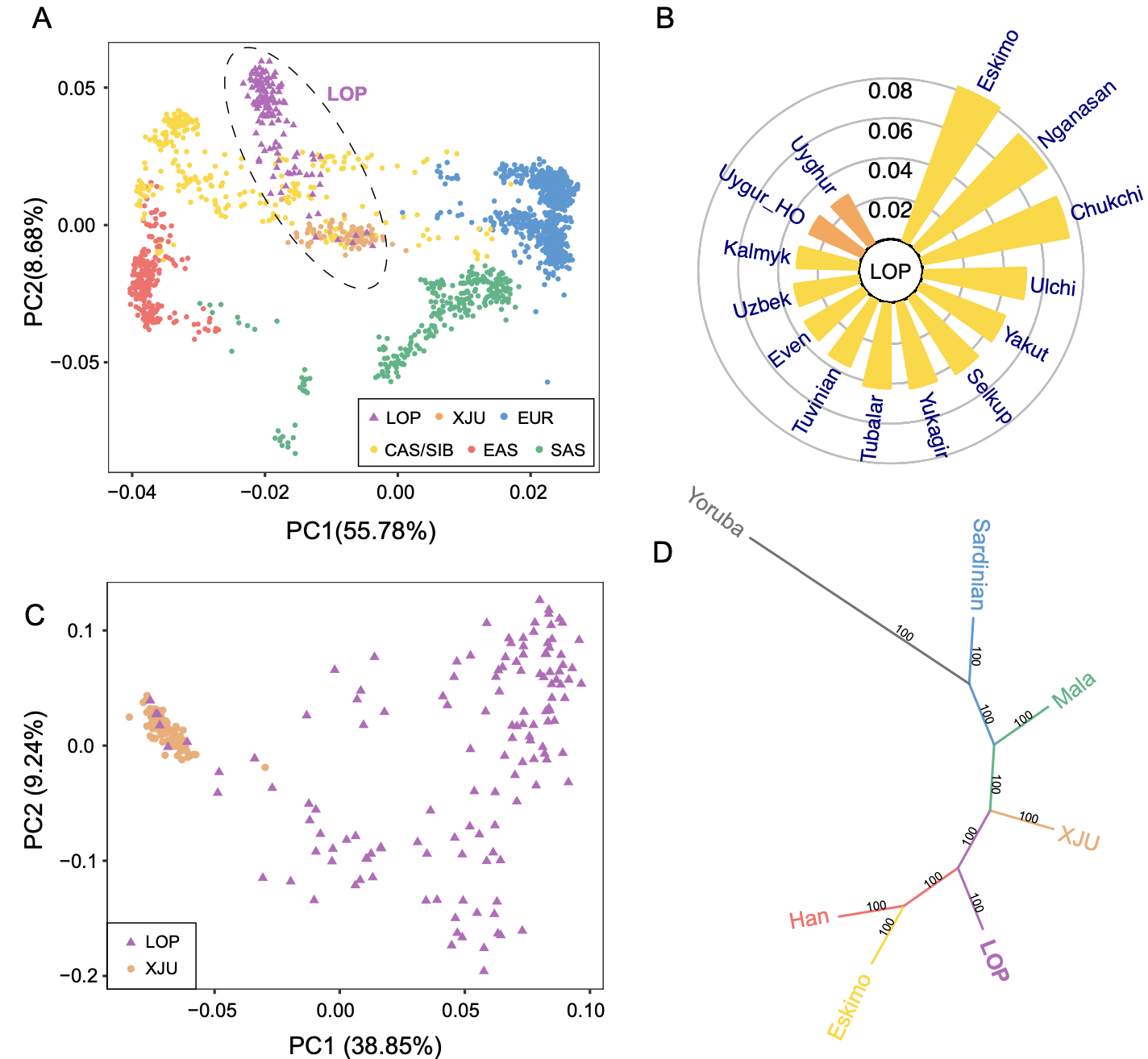 2025年4月16日,贝博体育官网 /人类表型组研究院徐书华团队在分子进化领域专业期刊Molecular Biology and Evolution发表题为“Sex-biased admixture followed by isolation and adaptive evolution shaped the genomic and blood pressure diversity of the LopNur people”《性别偏向性混合、隔离与适应性进化共同塑造罗布人基因组多样性及血压表型》的研究论文。通过全基因组深度测序、群体遗传学建模及表型关联分析,首次系统解析了新疆罗布人独特的遗传演化历史与高血压高发的进化遗传机制,为复杂疾病的环境-基因互作研究及精准医学应用提供了新范式。
