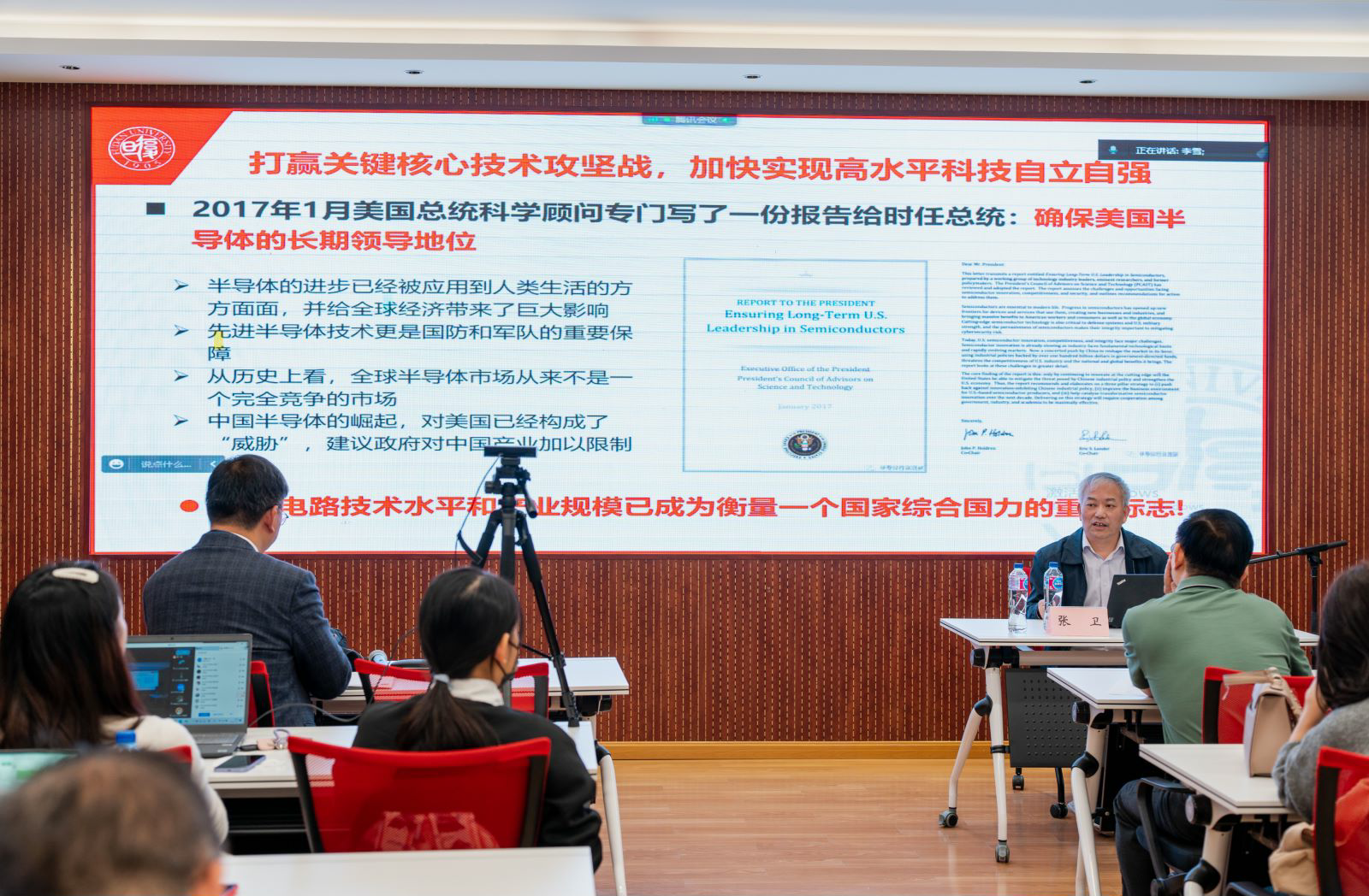 随后,张卫教授重点讲解了“打赢关键核心技术攻坚战,加快实现高水平科技自立自强”的内容。二十大报告强调,必须深入实施科教兴国战略、人才强国战略、创新驱动发展战略,开辟发展新领域新赛道,不断塑造发展新动能新优势。