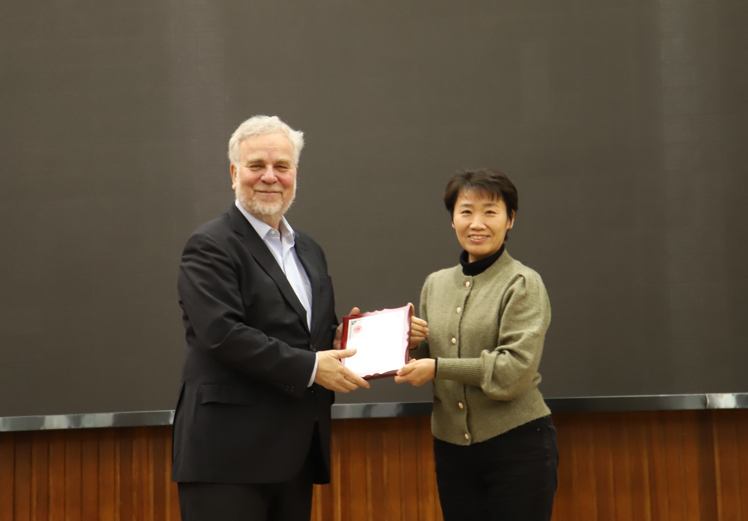 报告结束后,王久存教授为Axel Meyer院士颁发谈家桢生命科学讲坛主讲人证书,与会师生们就感兴趣的问题进行了热烈的交流与讨论。