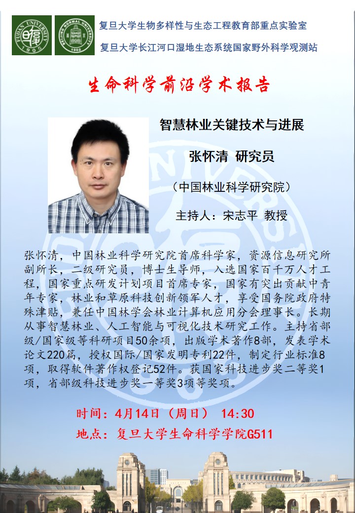 生命科学前沿学术报告-4月14日(周日) ,张怀清 研究员(中国林业科学研究院),生科院G511