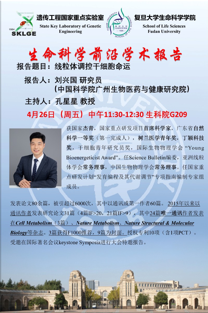 生命科学前沿学术报告-4月26日(周五) ,刘兴国 研究员(中国科贝博 广州生物医药与健康研究院),生科院G209