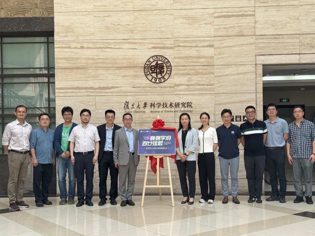 报告会前,由复旦大学与Cell Press细胞出版社共同主办,以“巍巍学府,百廿弦歌”为主题的学术期刊封面展在复旦大学江湾校区廖凯原法学楼一楼大厅揭幕。展览精选了复旦大学作为第一单位在Cell Press细胞出版社旗下多本期刊上发表的16篇封面研究论文,涵盖医学、生命科学、物质科学、交叉学科等多个领域,充分展示了复旦大学近年来在多学科内的前沿成果与创新理念。