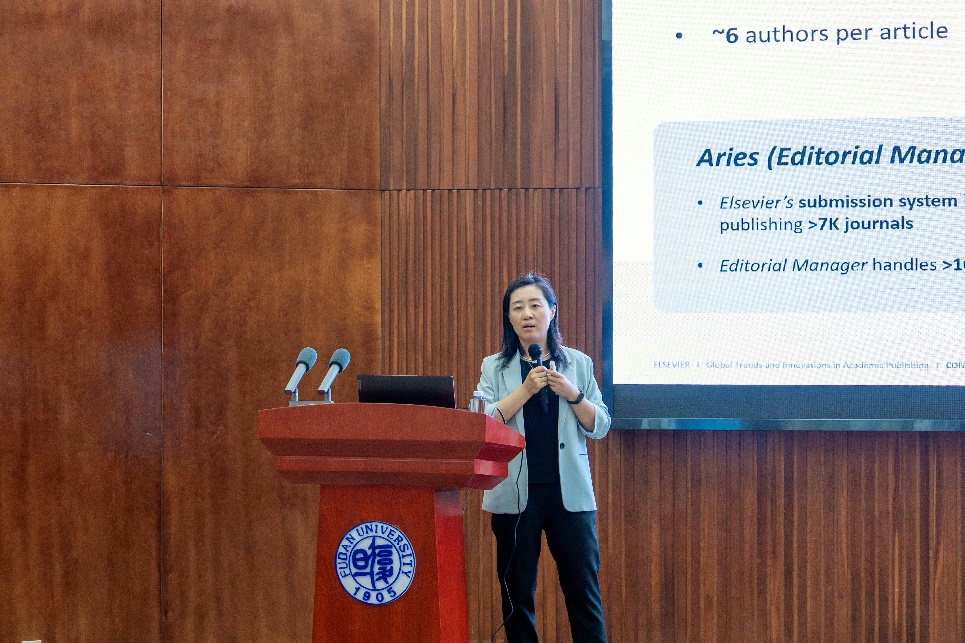 值复旦大学建校120周年之际,2025 年6月3日,贝博 举办爱思唯尔&Cell 学术报告会,爱思唯尔全球期刊中国区董事总经理孙岩、《Cell》副主编谭家颖博士应邀作报告,贝博 院长罗凌飞主持会议,来自贝博 、化学系、基础医贝博 、生物医学研究院、附属华山医院、附属儿科医院等单位校百余名师生参会交流。