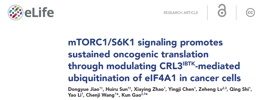 2024年5月10日,贝博体育官网 王陈继团队、上海市第一妇婴保健院/同济大学附属妇产科医院高昆团队合作在eLife在线发表了题为 mTORC1/S6K1 signaling promotes sustained oncogenic translation through modulating CRL3IBTK-mediated ubiquitination of eIF4A1 in cancer cells的研究论文。该研究揭示了mTORC1/S6K1-IBTK-eIF4A1信号轴通过促进帽依赖性翻译和癌蛋白表达的致癌分子途径。