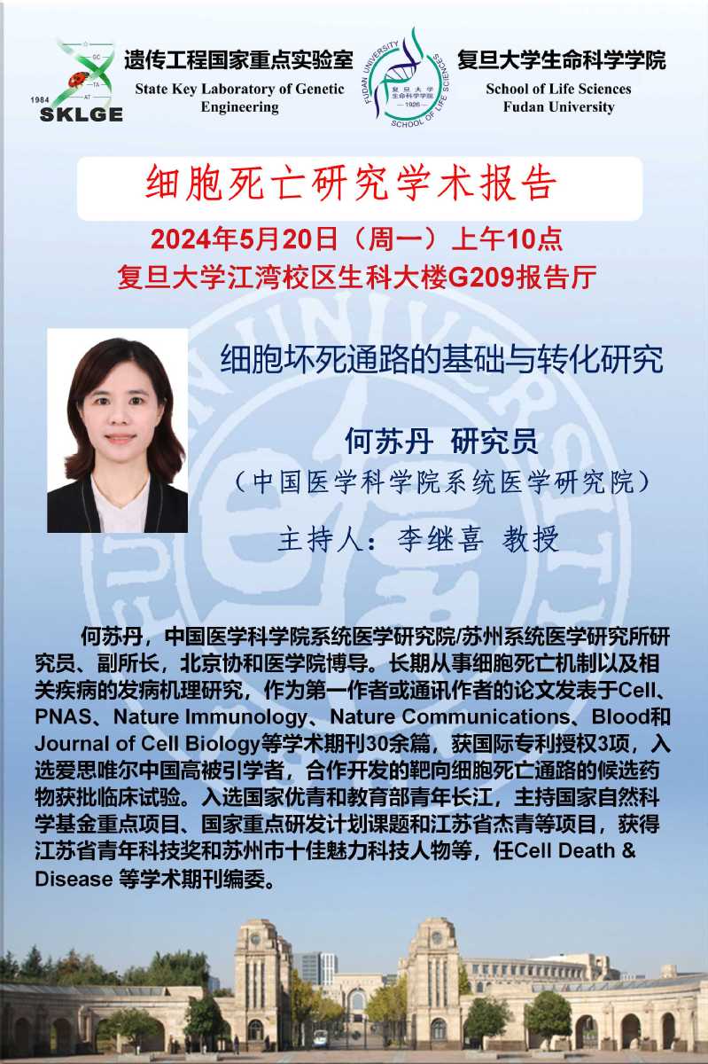 学术报告-2024年5月20日(周一) , 何苏丹 研究员(中国医学科贝博 系统医学研究院),生科院G209
