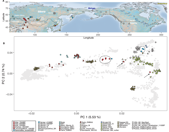亚欧大陆北部地区地广人稀,其人群历史上的迁徙混合史尚不明确,该地区的古基因组研究更是罕见。然而,由于幅员广阔,加之是早期人群进入美洲大陆的必经之处,北亚地区成为古基因研究不可回避的关键区域。