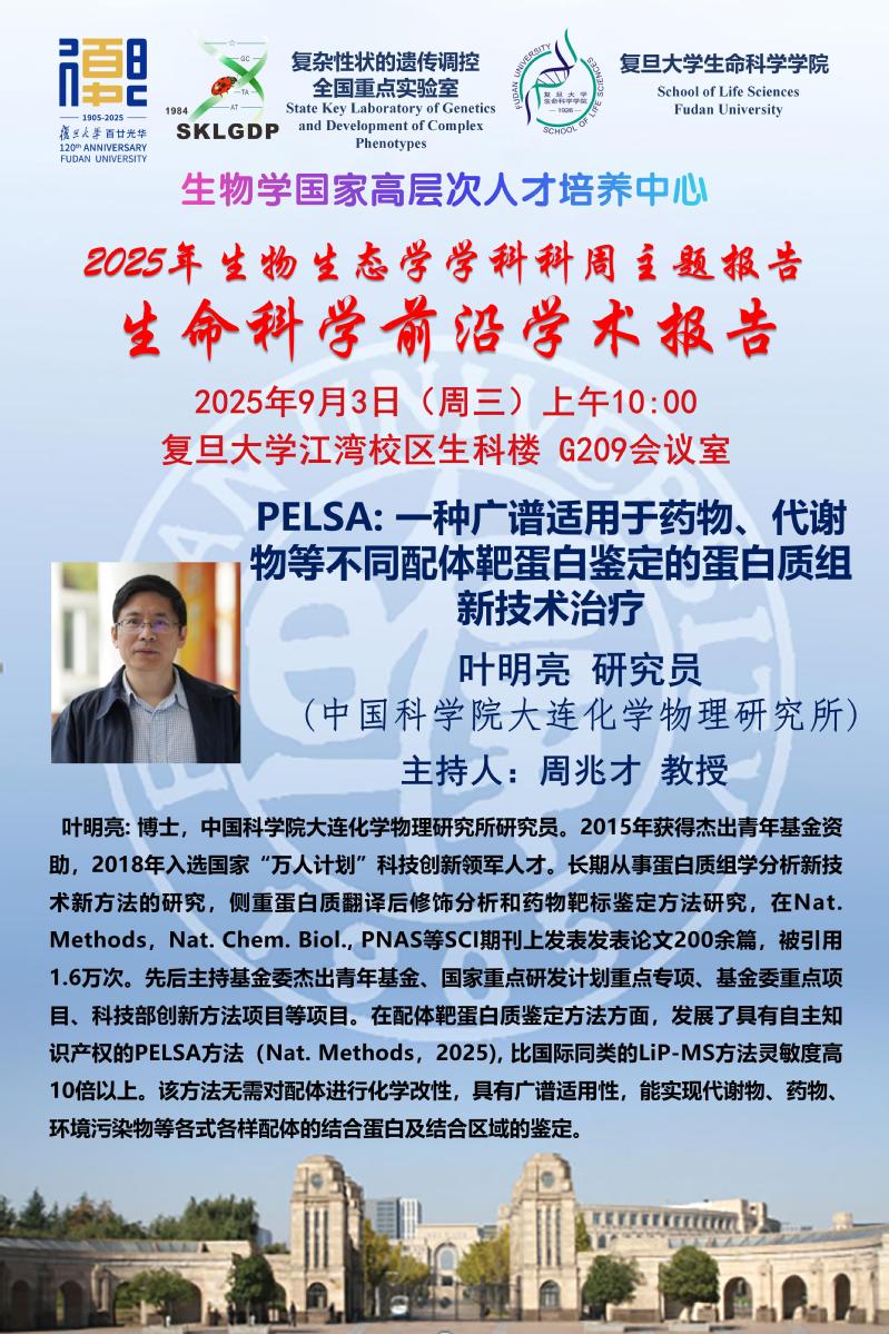 2025年学科周主题报告-生命科学前沿学术报告,9月3日(周三)上午10:00,叶明亮 研究员(中国科贝博 大连化学物理研究所)