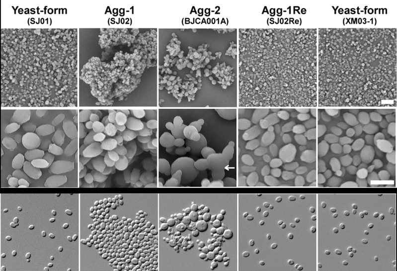 图二. 不同临床耳念珠菌菌株的细胞和生物被膜形态