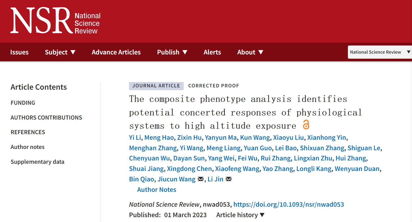 近日,复旦大学金力院士与王久存教授团队在National Science Review期刊发表题为The composite Phenotype Analysis Identifies Potential Concerted Responses of Physiological Systems to High Altitude Exposure的论文。该研究基于822名汉族男性在高原习服4个阶段(平原期、急性期、慢性期和脱习服期)的33个生理表型变化情况,提出并开发了纵向复合表型分析方法(Composite Phenotype Analysis, CPA),构建了覆盖33个表型的动态关联网络,提取出9个纵向复合表型来表征生理系统,进而发现复合表型间存在3个新的强关联,说明生理系统对高原低氧环境响应具协同效应。不同于横断面数据分析方法,CPA能够发现多个生理系统之间的隐藏关联和系统间交互的动态变化,是多个生理系统间纵向关联研究的有效研究策略。