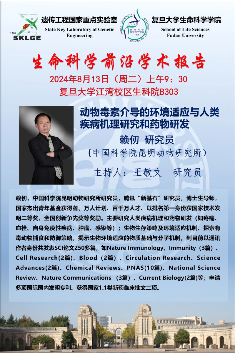 生命科学前沿学术报告-8月13日(周二)9:30,赖仞 研究员,中国科贝博 昆明动物研究所