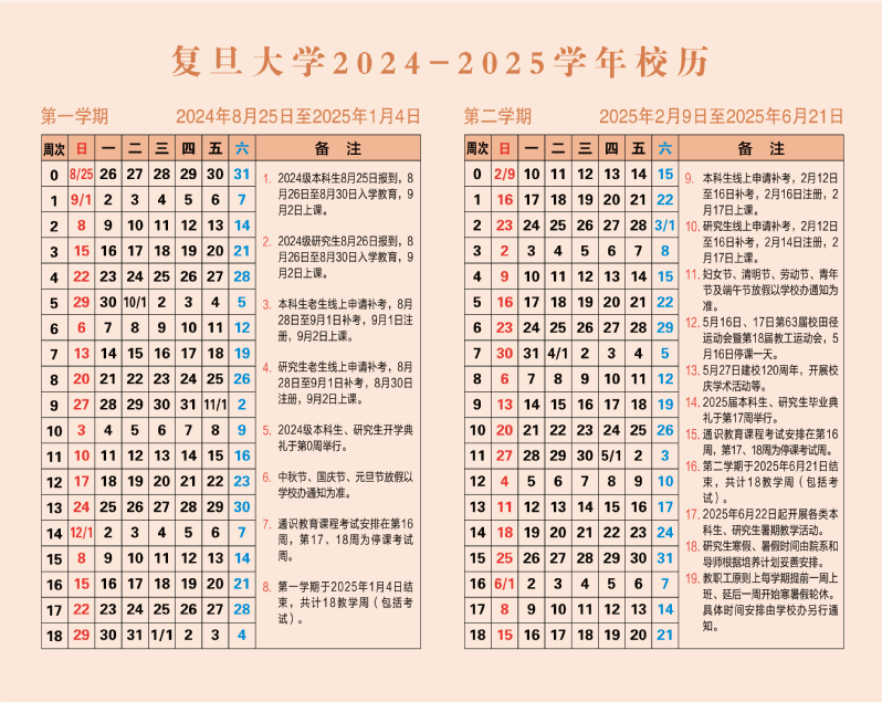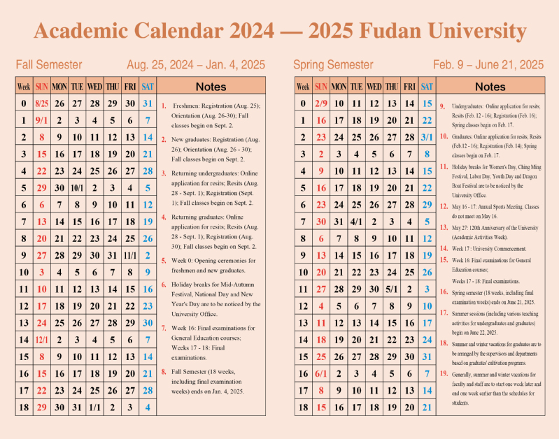 2024年秋季学期于2月17日(第1周周一)开始上课,本学期授课时间16周(6月6日为第16周周五),第17,18周为集中考试周。周一课程随堂考试安排在第15周周一5月26日上课时间,其他时间课程随堂考试安排在第16周上课时间。节假日安排以学校通知为准。
