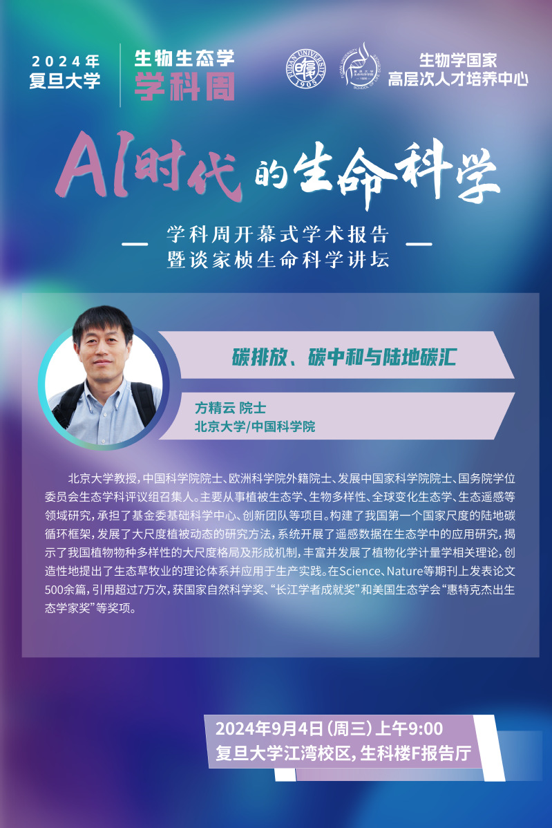 学科周-谈家桢生命科学讲坛--9月4日上午9:00,方静云 院士 北京大学