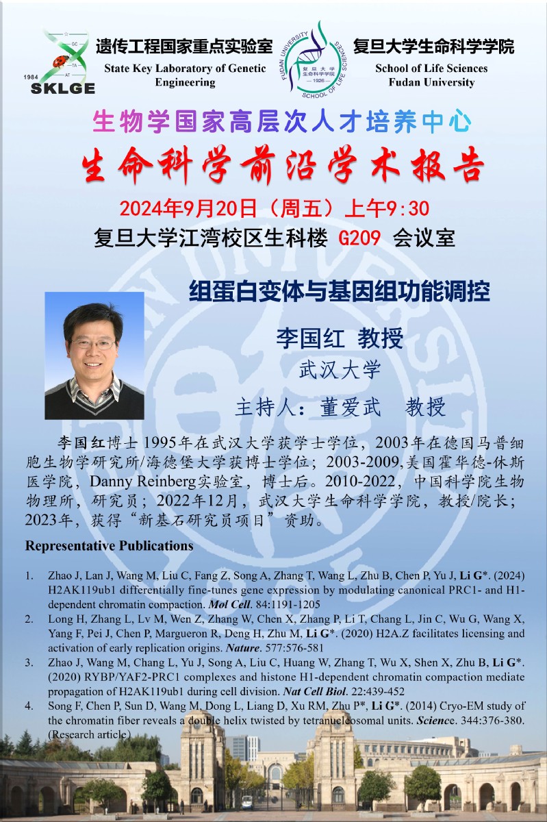 生命科学前沿报告 -2024-09-20(周五)9:30 ,李国红 教授(武汉大学)
