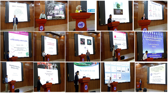 来自美国科贝博 院士、佛罗里达大学教授Douglas E. Soltis和Pamela Soltis夫妇,美国北卡罗来纳大学教堂山分校Joseph Kieber教授和Gregory Copenhaver教授,日本理化学研究所(RIKEN) Minami Matsui研究员,佐治亚大学Xiaoyu Zhang教授,法国国家科学研究中心(CNRS)的Dominique Gagliardi研究员和Jean Molinier研究员,以及植物所马红教授、郑丙莲研究员、缑金营研究员、任国栋研究员、王应祥研究员、李琳青年研究员、常芳副教授和黄建勋青年副研究员先后为大家献上了精彩纷呈的高水平学术报告。报告内容涵盖植物进化与植物多样性、植物发育与激素调控、植物光信号转导、植物表观遗传与RNA生物学、植物代谢与抗病,植物生殖发育等多个研究领域。