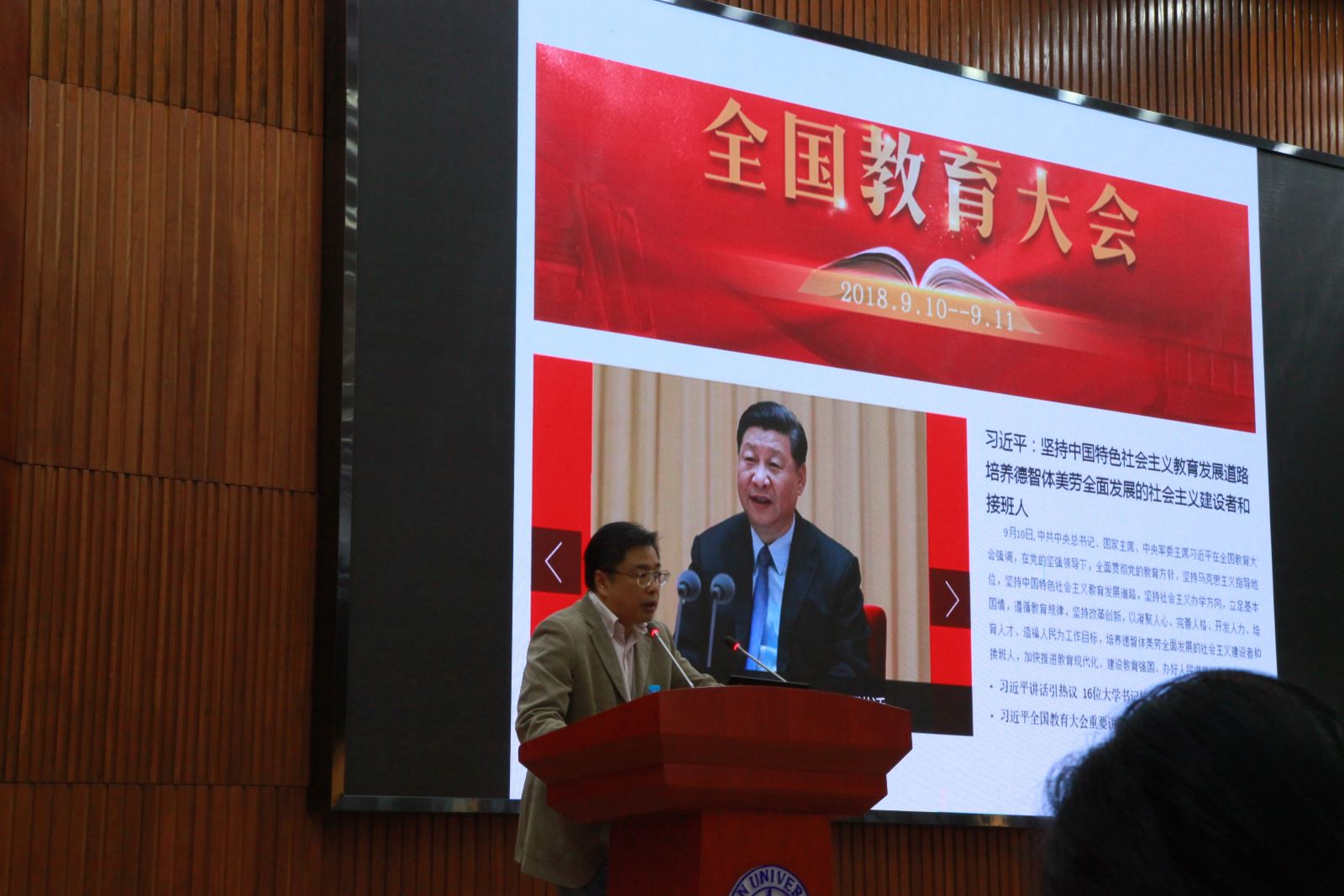 首先,杨继副院长针对本科生教学评估迎评工作进行动员。杨老师对审核评估工作做了具体的工作布置,首先强调本次评估的重点内容是围绕“五个度”,用自己的尺子量自己;评估的目的是发现问题,解决问题,提高人才培养质量。其次对全院教师参与本次迎评工作提出具体要求;同时指出复旦大学以国家意识、人文情怀、科学精神、专业素养、国际视野为人才培养目标,以“三全育人”、“五维育德工程”、“2+X”培养体系为人才培养的改革举措;以及突出了人才培养过程中从“思政课程”到“课程思政”体系的建设要求。最后杨老师对我院本科人才培养的体系建设、专业特色、办学基础等进行了凝练介绍,并动员全体教师积极配合本科教学评估工作。