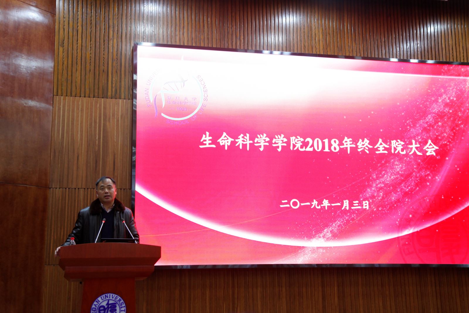 贝博 2018年终教职工大会于2019年1月3日(周四)下午13:30在复旦大学江湾校区生科楼F区报告厅举行,会议由陈浩明书记主持,会议主题为贝博 党政领导班子成员做年终工作总结汇报述职述廉。