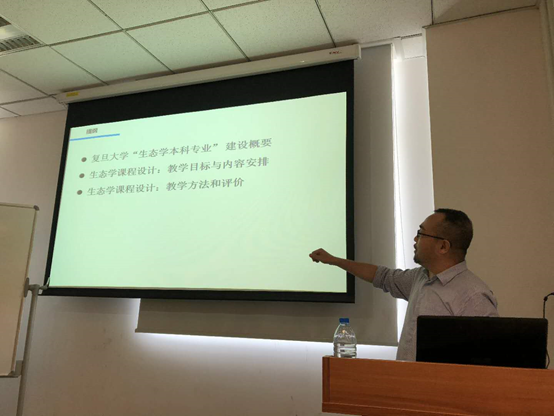 围绕此次交流的内容,复旦生态学科两位教师做了专题介绍。潘晓云副教授介绍了复旦大学生态学本科专业建设的概况,并详细介绍了针对不同专业本科生的生态学教学中安排教学内容的“知识点分层筛选法”和对应的“专业型”与“通识型”两类教学模式。赵斌教授结合自己多年来在现代信息技术与生态学教育教学融合领域的实践,着重针对生态学网络教学模式与教学资源开发这一当前热点进行了介绍。顾延生教授介绍了中国地质大学生态学的教学团队和教学研究情况,特别介绍了中国地质大学将从2019年秋季学期开始将生态学课程作为全校本科生的通识类课程。针对这一通识课程的建设,吴纪华教授和南蓬副教授分享了复旦大学在生命科学导论这一面向全校本科生的通识课程的教学安排和教学经验。张文驹教授也介绍了复旦大学生物学野外实习课程中“以生态学为主线”组织教学内容的经验。双方教师在生态学教学的内容组织、教学模式、教学质量评估等方面进行了热烈而深入的讨论。