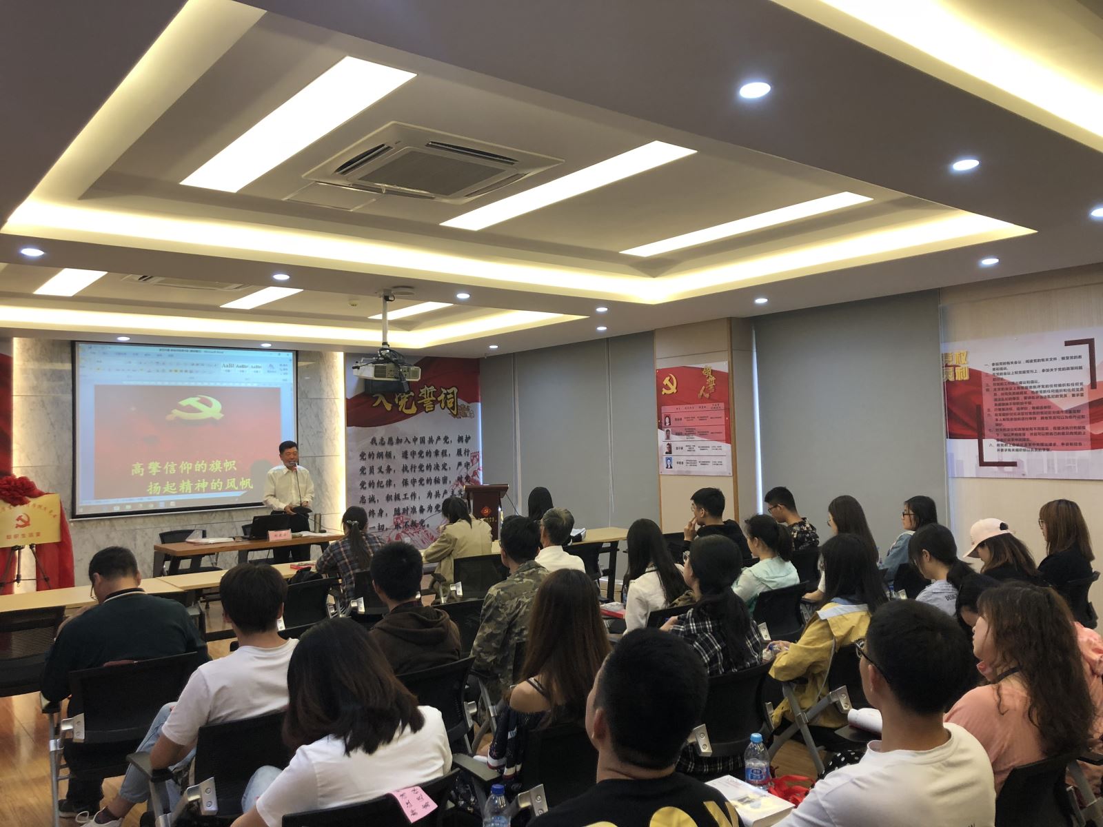 仪式结束后,高校特邀党建组织员郝建华以"高擎信仰的旗帜,扬起精神的风帆"为主题,为贝博体育官网 研究生代表上了生动的“微型党课。”郝书记结合自身经历鼓励青年同学们应坚定信仰,接续奋斗。