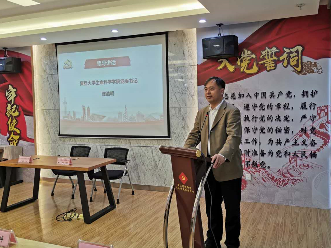 复旦大学江湾校区管委会主任李高平,贝博体育官网 党委书记陈浩明,区委组织部副部长、区委老干部局局长卜健,新江湾城街道党工委书记、人大工委主任杜娟,贝博体育官网 党委副书记余文博等领导出席仪式,贝博体育官网 2018级研究生第三、第四党支部代表、新江湾城老年协会离退休干部党支部代表等50余人参加仪式。