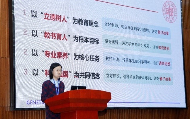 接着,贝博 卢宝荣教授和吴燕华老师结合学校课程思政建设的总体要求和指导纲领分别从“艺术、科学研究与创新思维”和“遗传学课程思政建设”进行了介绍。卢老师指出,要造就服务于国家和人民的高素质人才和未来接班人,必须包括科学、人文和艺术的全面培养。在教育教学的过程中将真善美的种子埋在学生的心中,以美育德,以美育智,用艺术思维激发学生创新的科学精神,培养出有创新之思的有为青年。随后,吴燕华老师分别从:做好老师,树立学生的学习榜样,讲好复旦故事;讲好课程,关注学生的学习成效,讲好知识体系;教好方法,培养学生的科学精神,讲好遗传思想;立好理想,引导学生的奋斗志向,讲好种子故事;从四个方面介绍了遗传学课程思政的建设思路。为国家培养有理想、有本领、有担当民族复兴大任的时代新人。