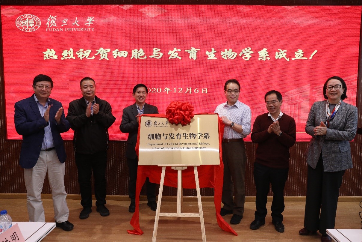 专家讨论之后,学校常务副校长金力院士宣布复旦大学细胞与发育生物学系成立,孟安明院士、李蓬院士,许田教授、林鑫华教授、侯宪玉教授及特邀专家学者为学系揭牌。