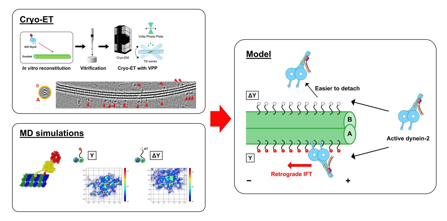 2025年11月26日,贝博体育官网 市川宗严(ICHIKAWA Muneyoshi)课题组在The EMBO Journal杂志上发表了题为 “Cryo-ET and MD simulations reveal that dynein-2 is tuned for binding to the A-tubule of the ciliary doublet”的研究论文,结合冷冻电镜断层扫描(Cryo-ET)和分子动力学模拟(MD simulations)等手段揭示了动力蛋白2(dynein-2)在纤毛中优先结合二联微管A小管的分子机制。