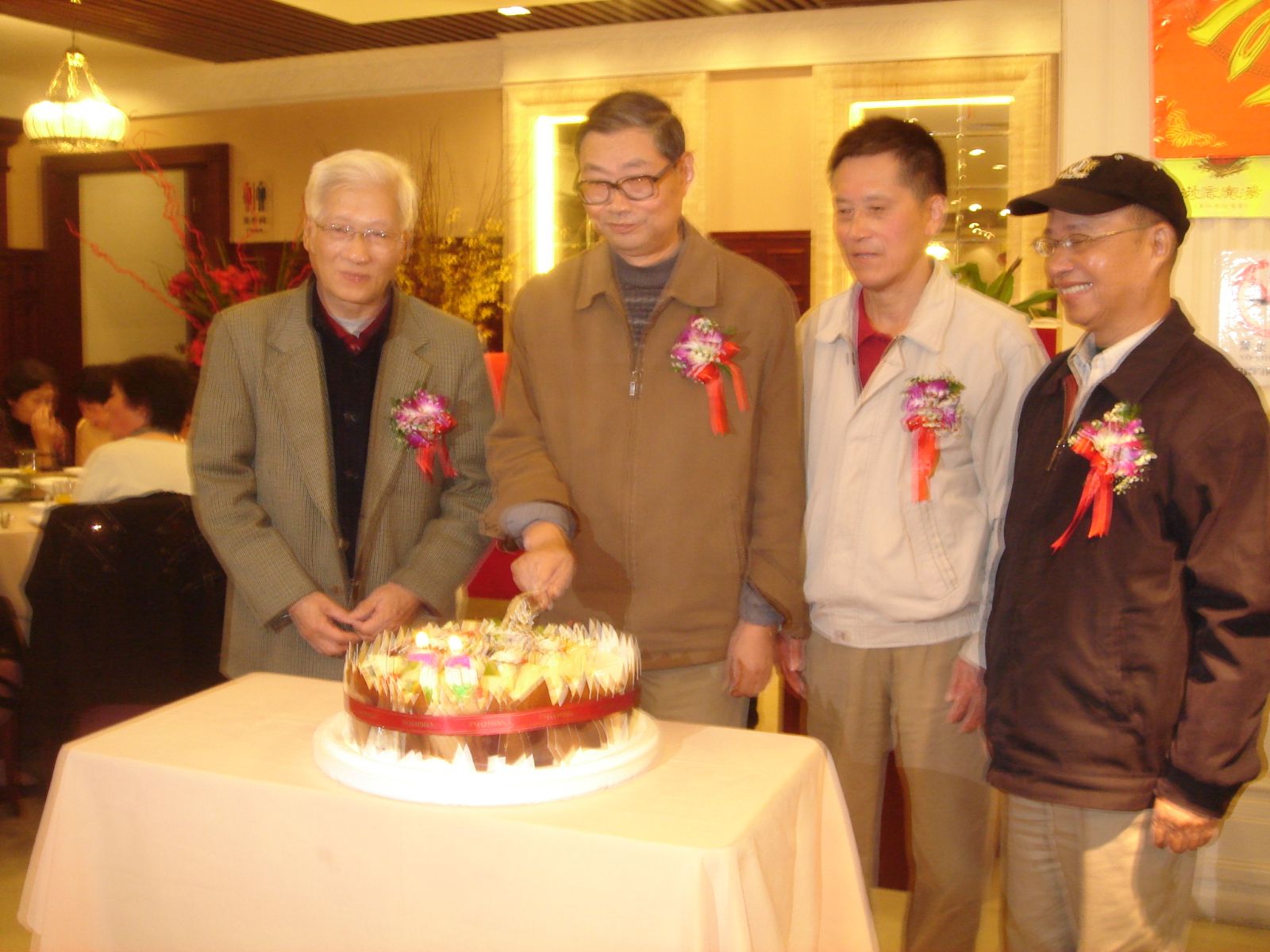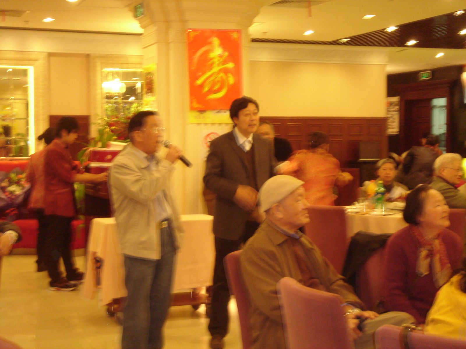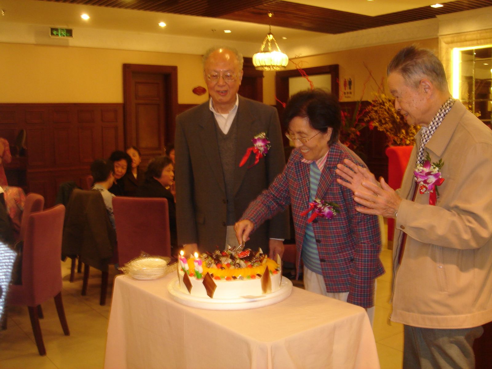 11时30分,祝寿活动在“118”合唱队员倾情献唱的三首歌曲中正式拉开了序幕。这是一支平均年龄在70岁以上的院退休教职工自命“118”的合唱队。为了这次曲目中一支新歌的“首演”,队员们不辞劳苦、风雨无阻地每周一都聚在立人生物楼118活动室排练。歌声时而慷慨激昂,时而又如柔风细雨,久久回荡在餐厅大堂。
