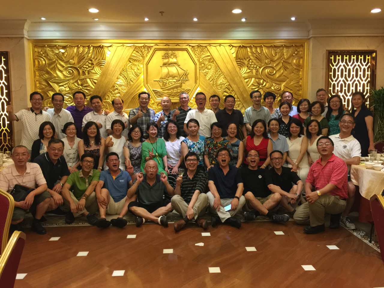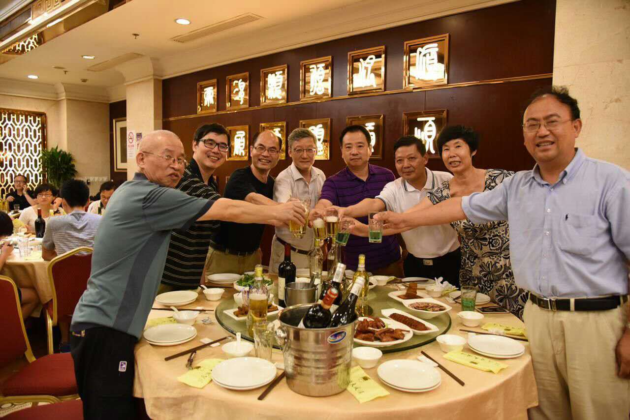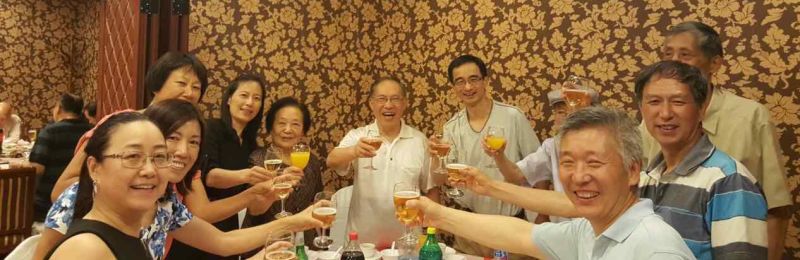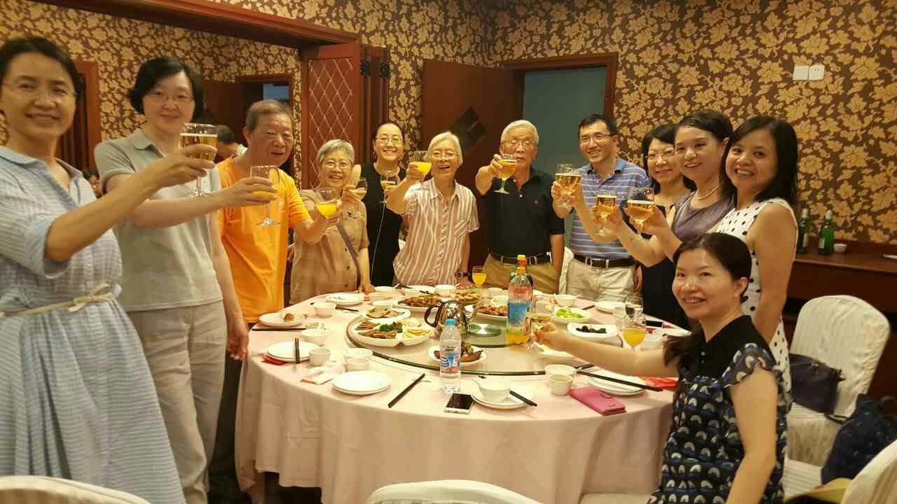 座谈会结束,大家一起穿过校园,来到复宣酒店,与读书时的任课老师们共进午餐。看到阔别三十年的老师们,大家觉得无比亲切,每一位校友念及老师的殷殷教诲时心中总生出诚挚的感动和无限的感激,大家情不自禁得纷纷举杯向敬爱的老师们敬酒。席间,气氛热烈,师生相聚其乐融融,大家一起回忆着复旦读书时的点点滴滴。谈到高兴处,微生物班的周德庆和陈永青老师更是即兴演唱了世界名曲《我的太阳》,周德庆伉俪还合唱俄罗斯名曲《喀秋莎》,优美的歌声博得一片喝彩。