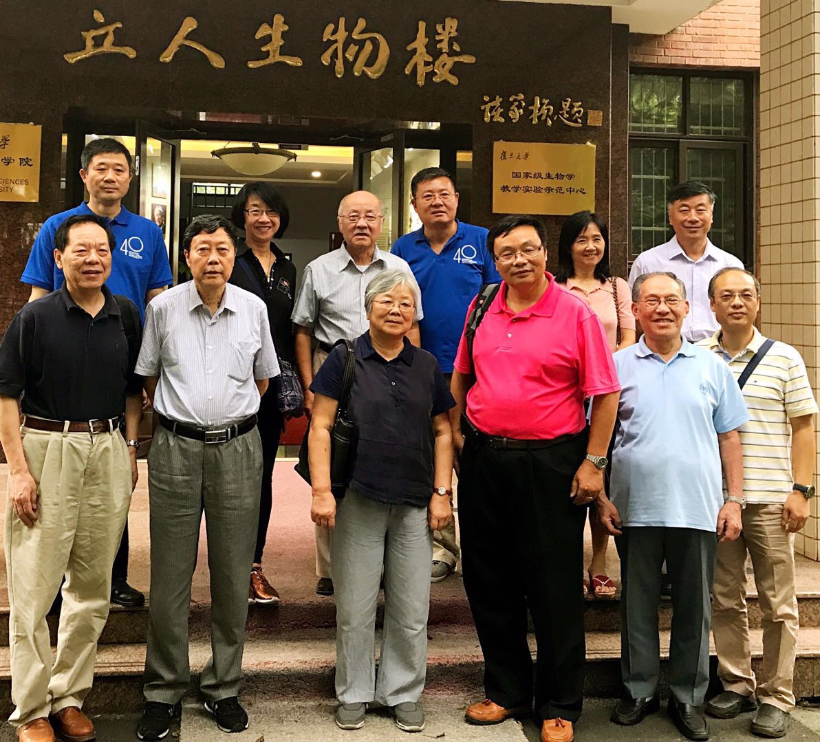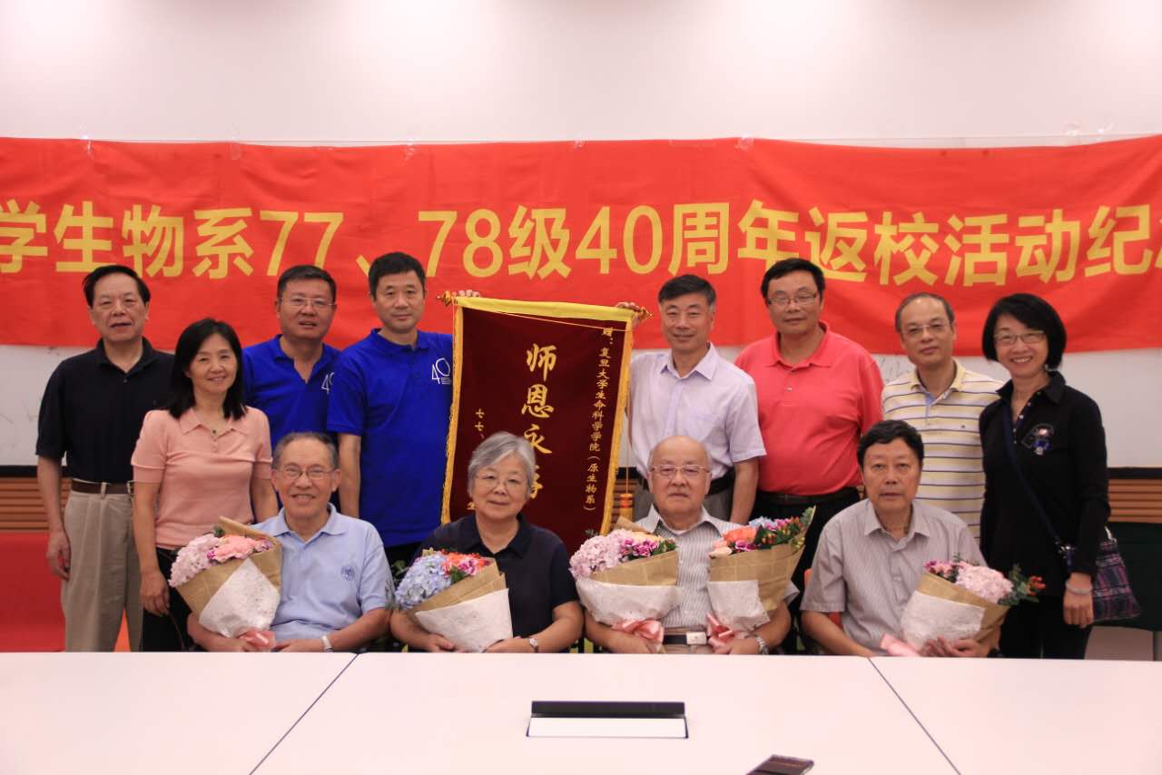 2017年9月29日上午,校友们来到立人生物楼103会议室,与当年的授棵老师们、辅导员一起亲切座谈,苏德明、周德庆、曹凯鸣、叶敬仲四位退休教师出席座谈会。