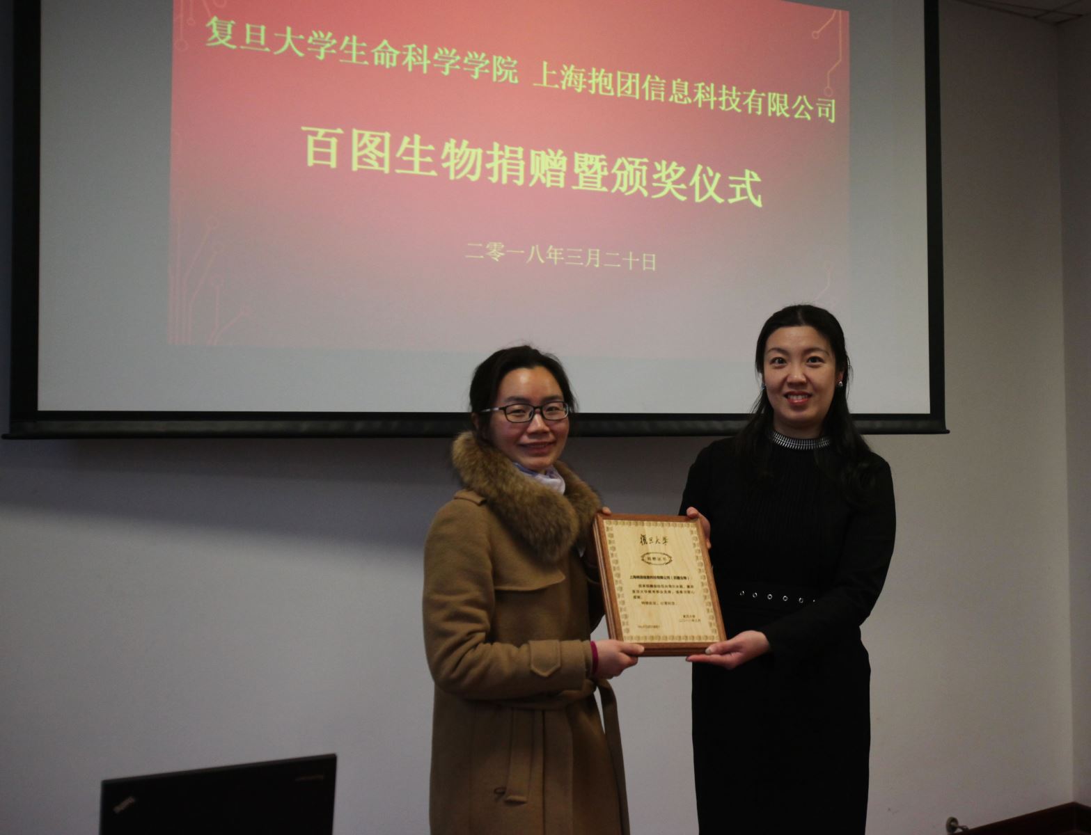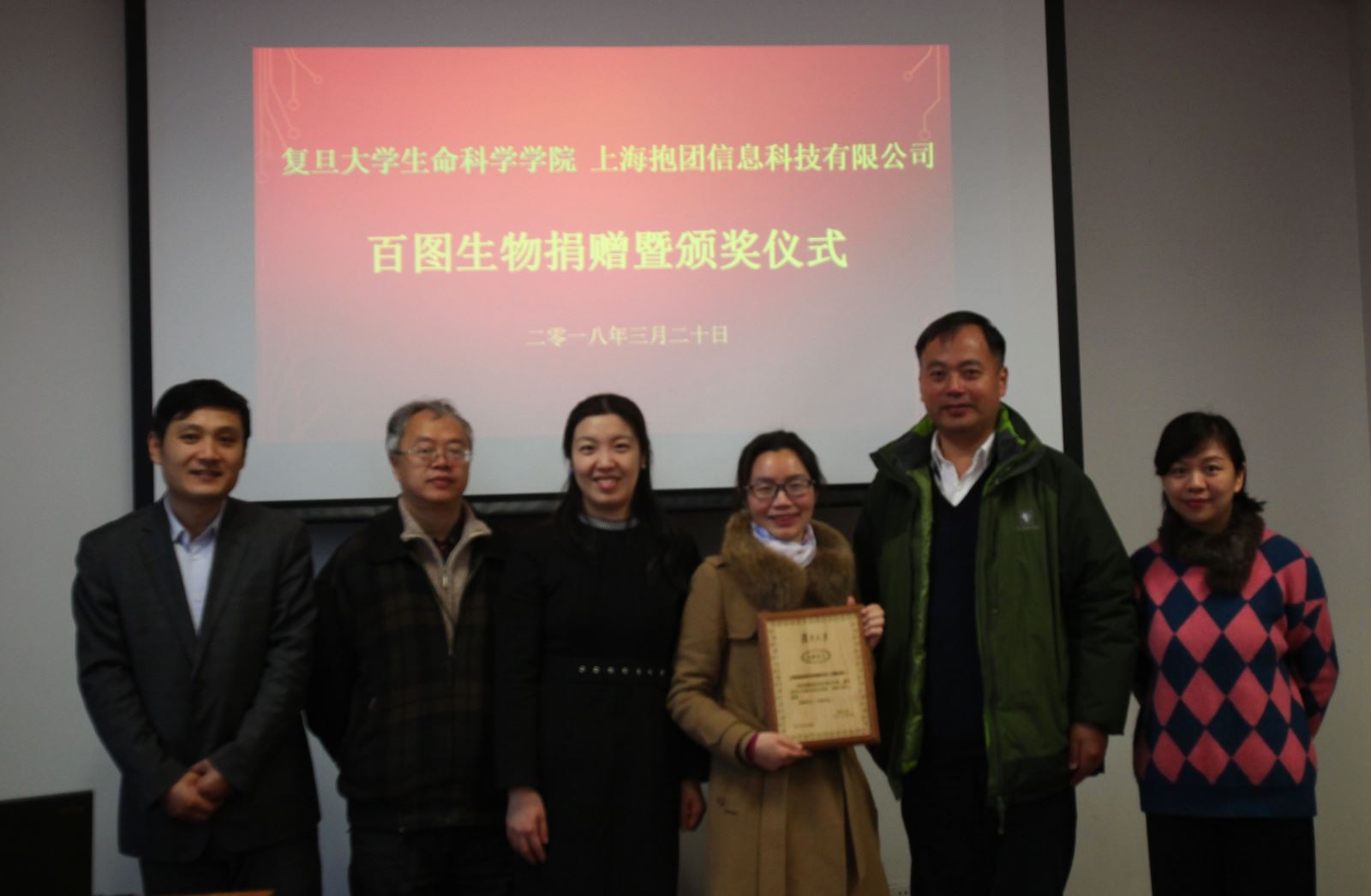 2018年3月20日,百图生物捐赠暨颁奖仪式在贝博体育官网 B303会议室举行,复旦大学对外联络与发展处副处长陆颖丰、贝博体育官网 党委书记陈浩明、上海抱团信息科技有限公司CEO毛萍、复旦大学生物技术中心主任钱吉、海尔医疗冰箱上海销售总监杜鹏出席捐赠仪式,会议由贝博 党委书记陈浩明主持。