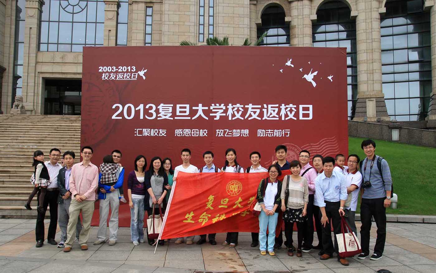 2013年 6月1日,我院2003届毕业生40余人参加了学校举办的“放飞梦想 励志前行”的校友返校日活动。当天,细雨霏霏,校友们带着复二代,兴致盎然地在江湾校区体会学校的发展,在邯郸校区回顾往昔的日子;分享十年的经历,畅想下一个十年。晚上,白天没能赶来的其他上海地区的校友陆续赶来参加在燕园宾馆的聚餐。贝博 陈浩明书记参加,席间校友们亲切交流,其乐融融。