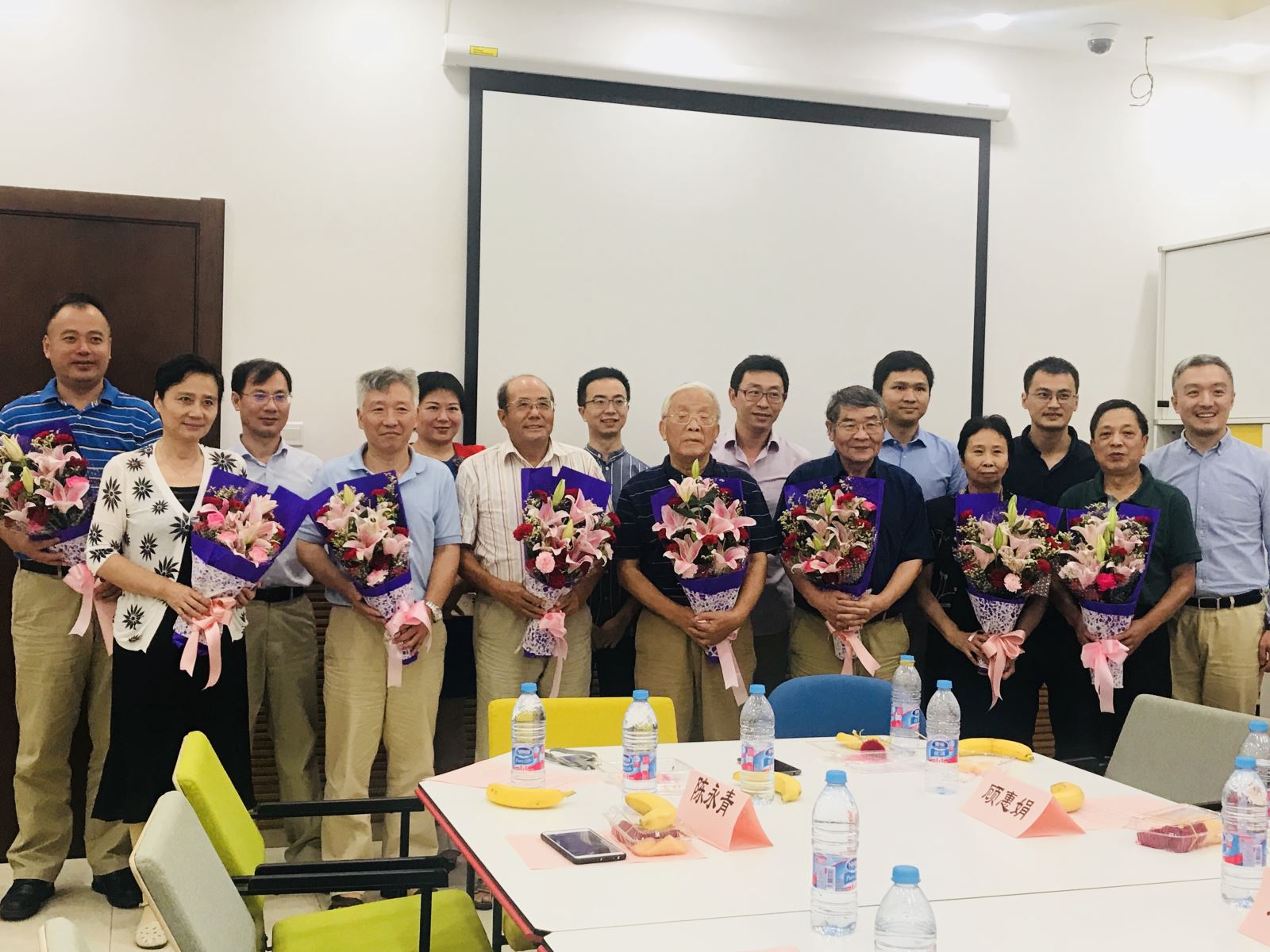 座谈会在校友献花环节进入了高潮。为了表达对恩师的尊崇之情,校友们将鲜花送到老师的手中,祝福老师身体健康,家庭幸福。笑容洋溢在老师们的脸上,也由衷地表达了校友们回母校看望老师的敬意。