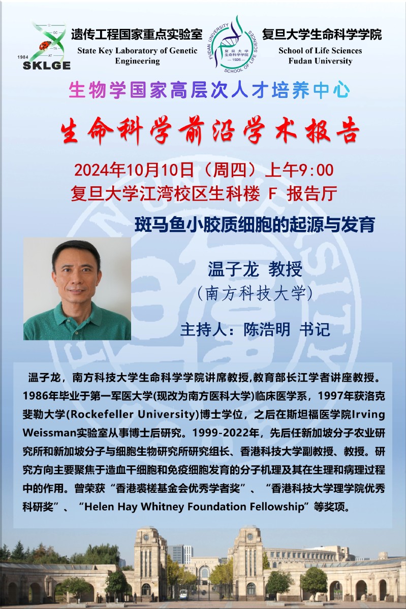 生命科学前沿学术报告--2024-10-10上午9:00,温子龙 教授(南方科技大学)