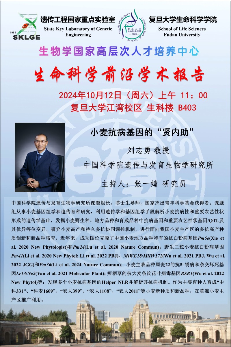 生命科学前沿学术报告--2024-10-12上午11:00,刘志勇 教授(中科院遗传发育所)