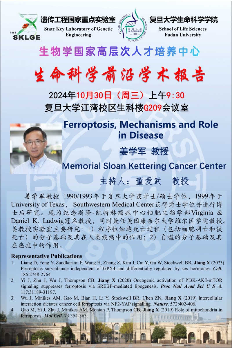 生命科学前沿学术报告--2024-10-30,姜学军 教授(Memorial Sloan Kettering Cancer Center)