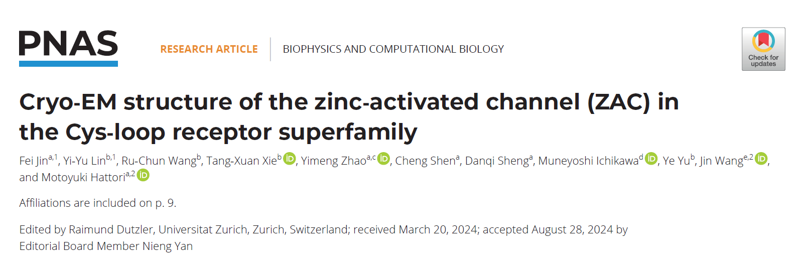 2024年10月24日,复旦大学服部素之团队在PNAS发表文章“Cryo-EM structure of the zinc-activated channel (ZAC) in the Cys-loop receptor superfamily”。该项目由贝博体育官网 服部素之课题组与中国药科大学理贝博 汪津课题组合作完成。