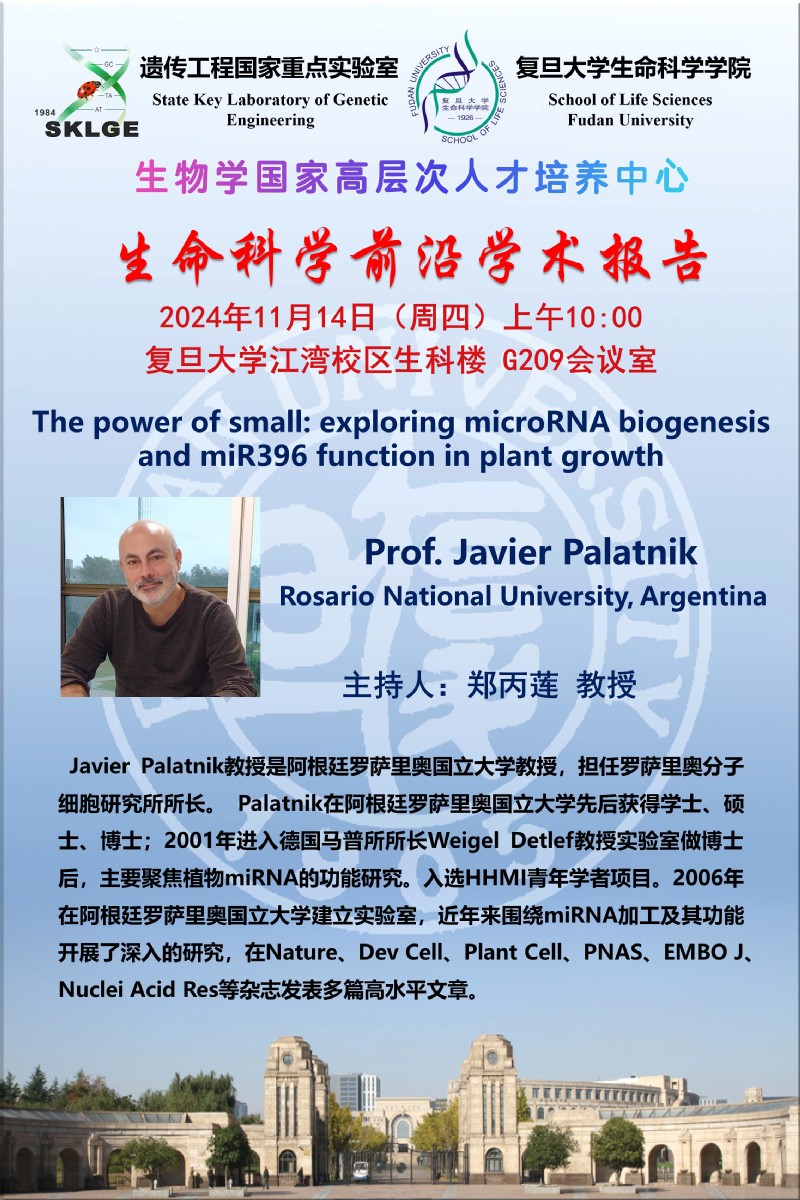 生命科学前沿学术报告--2024年11月14日上午10:00,Prof. Javier Palatnik Rosario National University, Argentina