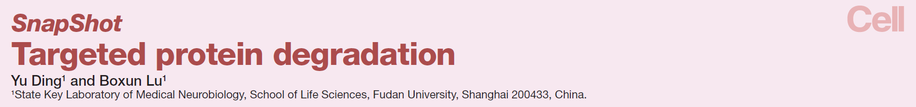 贝博体育官网 鲁伯埙和丁澦受《Cell》杂志主编Luis Gomes邀请,撰写了题为Targeted Degradation Technologies的SnapShot,系统介绍了靶向降解技术的发展现状、主要类别、作用机制及其在药物发现中的应用潜力,该文于2024年11月14日在《Cell》上正式发表。