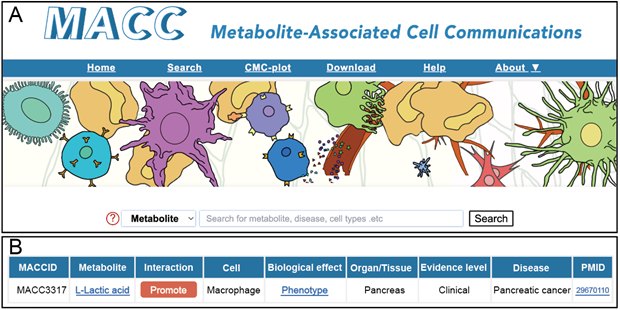 MACC 1.0聚焦于人类内源性代谢物,基于文献挖掘算法筛选了约150万篇与代谢物相关的研究论文,经多轮人工校验后整合为高质量代谢物介导的细胞相互作用,收录了细胞间通过代谢物的分泌和吸收进行远程通讯的信息,以及由此对靶细胞产生的下游生物功能注释。MACC作为配体-受体介导的细胞间相互作用关系的有力补充,为解析细胞间通讯提供新的视角。知识库在线链接://macc.badd-cao.net/