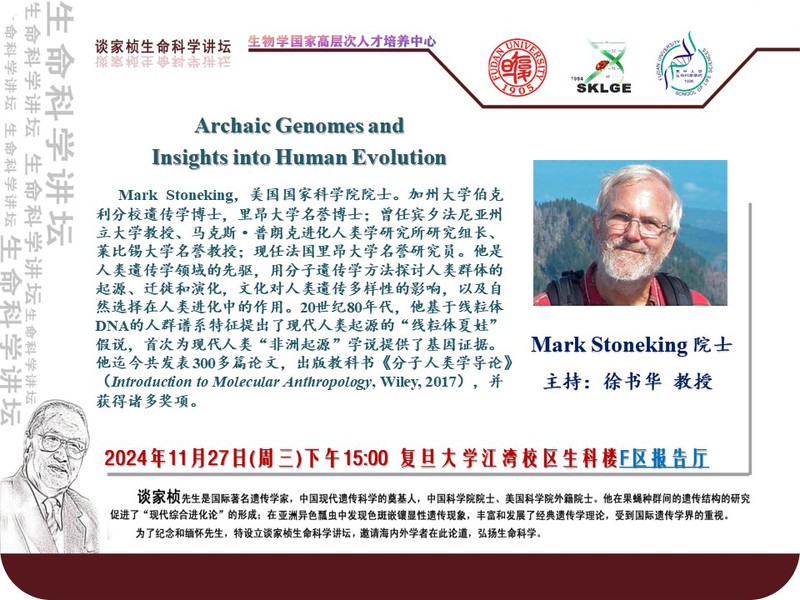 谈家桢生命科学讲坛-2024-11月27日(周三)下午15:00,Mark Stoneking(美国国家科贝博 院士,法国里昂大学)