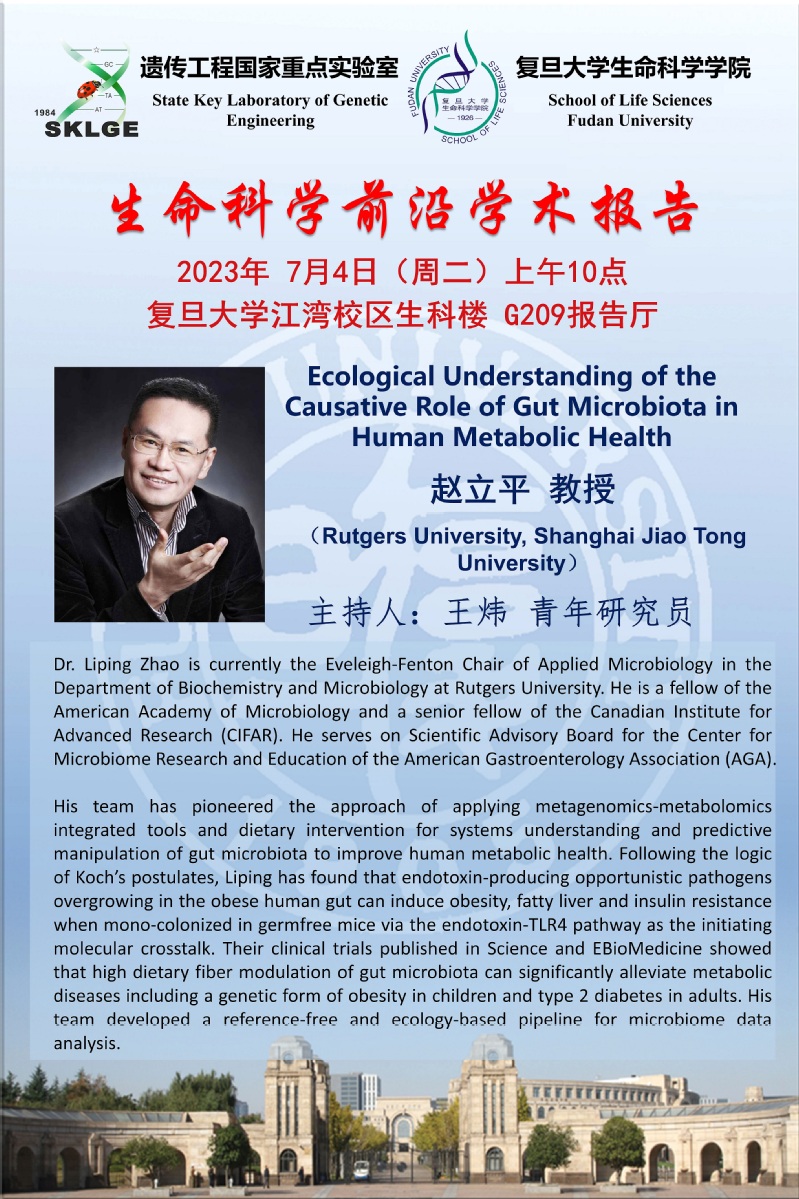 生命科学前沿学术报告-2023-07-04(周二)10:00,赵立平 教授(Rutgers University, Shanghai Jiao Tong University)