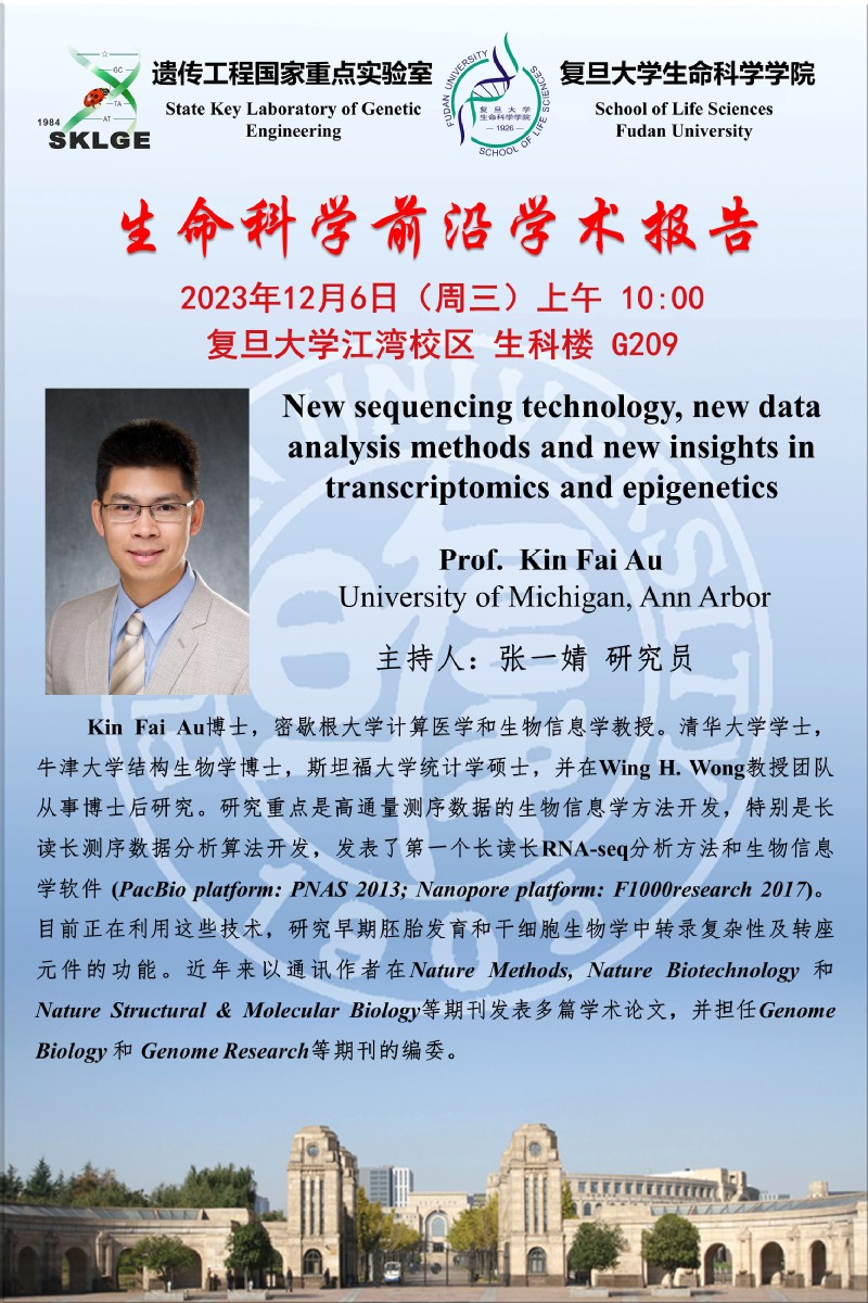 生命科学前沿学术报告-2023-12-6(周三)上午10:00,Prof. Kin Fai Au (密歇根大学)