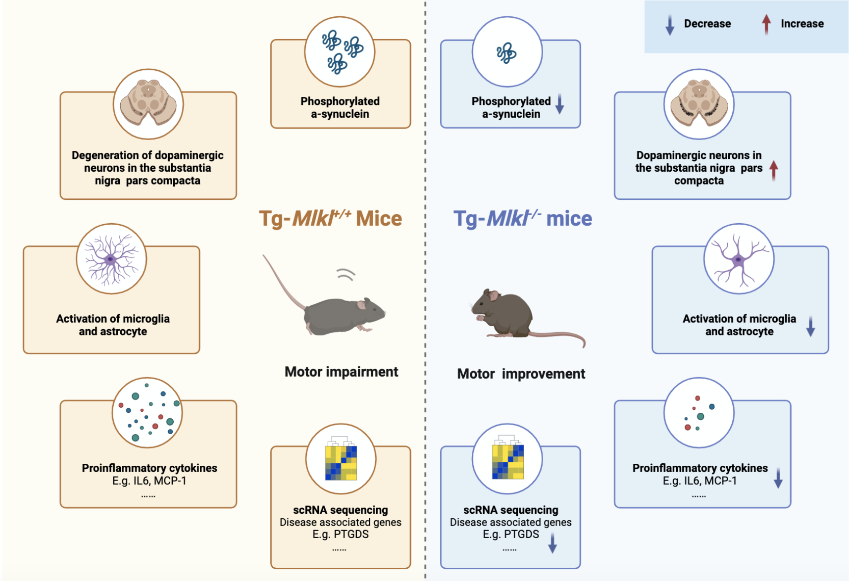 图1. MLKL缺失缓解帕金森病模型小鼠的神经炎症和运动障碍症状