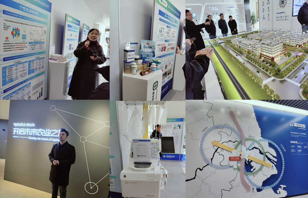 第二天,在常州市新北区人民政府副区长章俊、常州市高新区科技局吴雪强局长、张俊副局长等领导陪同下,中心参会师生们考察了南京师范大学常州合成生物学产业研究院及其合成生物中试平台、恒泰第一工园生命科技港、常州新米生物科技有限公司等落地常州的平台和科技企业,还参观了常州市两湖创新区规划展示馆,近距离感受到常州政府领导的产业规划布局概貌、务实的招引人才项目态度以及配套设施齐备的创业生态,体验到了与在学校实验室不一样的创新氛围。