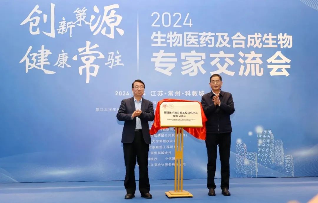 在随后的揭牌仪式环节,蒋鹏举、陈浩明共同为贝博体育官网 全球校友会创新成果转化中心揭牌,祝正庆与复旦大学基因技术教育部工程研究中心主任卢大儒为基因技术教育部工程研究中心常州分中心揭牌。两个中心的成立标志着复旦大学与常州市在生物医药及合成生物领域创新成果转化、人才培养等全方位的合作迈出了坚实的一步。