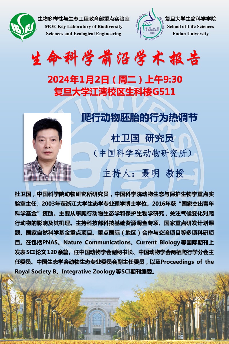 生命科学前沿学术报告-2024-1-2 (周二)杜卫国 研究员(中国科贝博 动物研究所),生科院G511