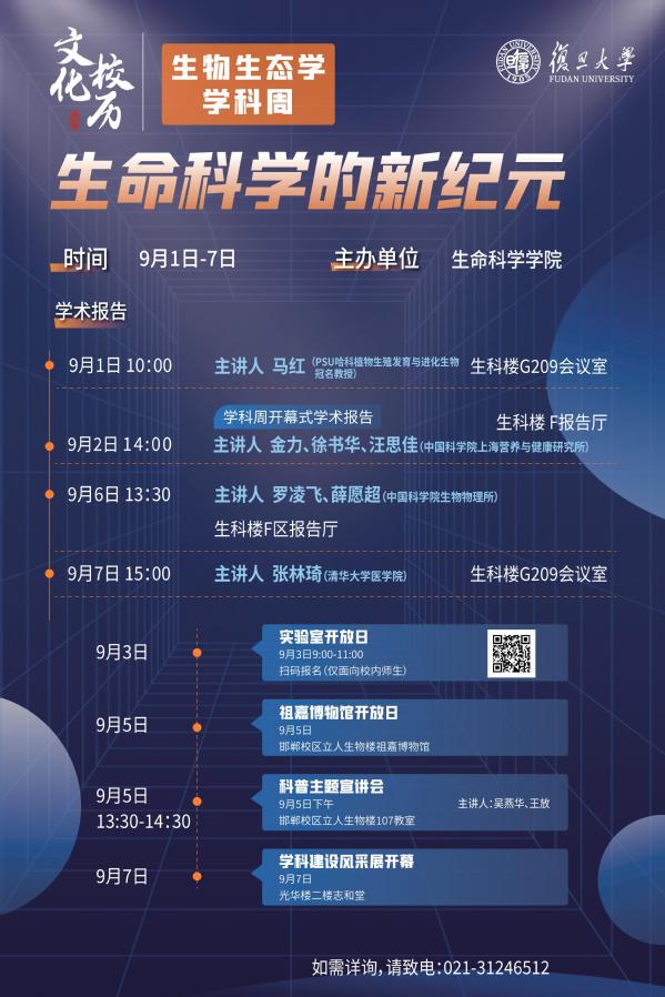 以“生命科学的新纪元”为主题的生物生态学学科周是29场“学科周”中的第一场。今起至9月7日,贝博 将组织举办包括高端学术报告、祖嘉博物馆参观、科普讲座、学科风采展示、实验室开放日等一系列活动。本月,口腔医学学科周、基础医学学科周还将接力举办,欢迎师生校友积极参与。